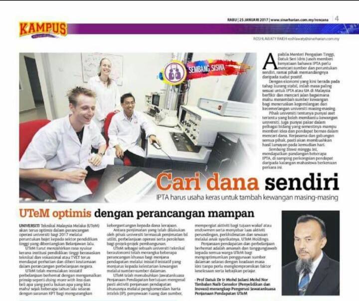 Mengulas tentang penyelidikan ini jelas menzahirkan UTeM bukan hanya menzahirkan semarak penyelidikan yang berteraskan teknologi semasa selari Revolusi Industri 4.0 malahan ianya memberikan impak langsung kepada komuniti dan industri selari dengan hasrat nasional.
