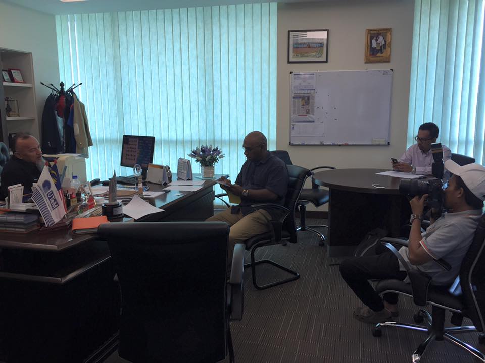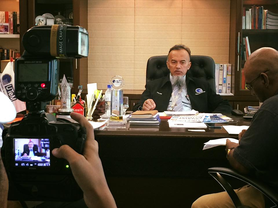 Sesi temubual sedang berlangsung bersama wakil New Straits Times. Temubual berkaitan perkembangan penyelidikan UTeM, cabaran yang mendatang serta persediaan UTeM dalam mendepani gelombang 4th Industrial Revolution.