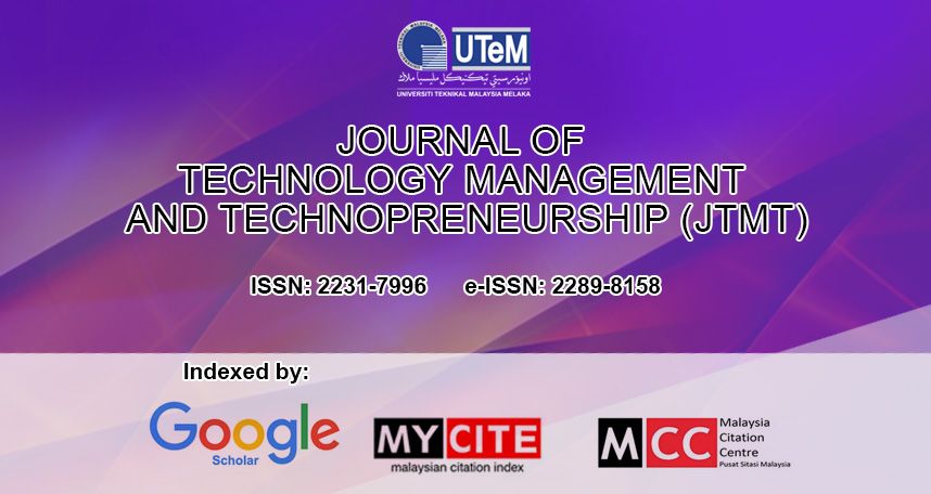 Journal of Technology Management and Technopreneurship (JTMT) (e-ISSN 2289-8158) is a refereed journal, published once a year by Faculty of Technology Management and Technopreneurship, UTeM. The first issue of JTMT was launched in December 2012. This journal is published annually in December. The primary purpose of the Journal of Technology Management and Technopreneurship (JTMT) is to publish are scholarly research articles in the fields of technology management and technopreneurship.