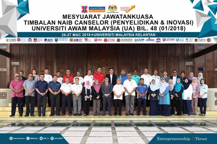 Terima kasih kepada Universiti Malaysia Kelantan (UMK) sebagai hos bagi Mesyuarat Jawatankuasa Timbalan Naib Canselor (Penyelidikan & Inovasi) Universiti Awam Malaysia Bil.48/2018 atas fasiliti yang bagus dan layanan yang baik.. Banyak perkara telah dibincangkan bersama dalam memperkasakan budaya penyelidikan di universiti masing-masing dalam era IR4.0..