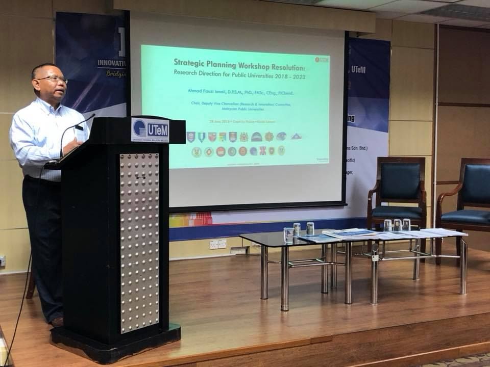 “Hari ini sedang berlangsung Pra Bengkel Halatuju Penyelidikan & Inovasi yang melibatkan semua dekan fakulti, Pusat Pengurusan Penyelidikan & Inovasi (CRIM), Pusat Pengkomersilan (UCC) dan Pusat Kecemerlangan (CoE) untuk strategi memacu budaya Penyelidikan & invovasi yang cemerlang.”