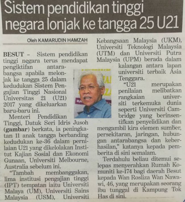 Sistem Penyelidikan Tinggi Negara Lonjak Ke Tangga 25 U21